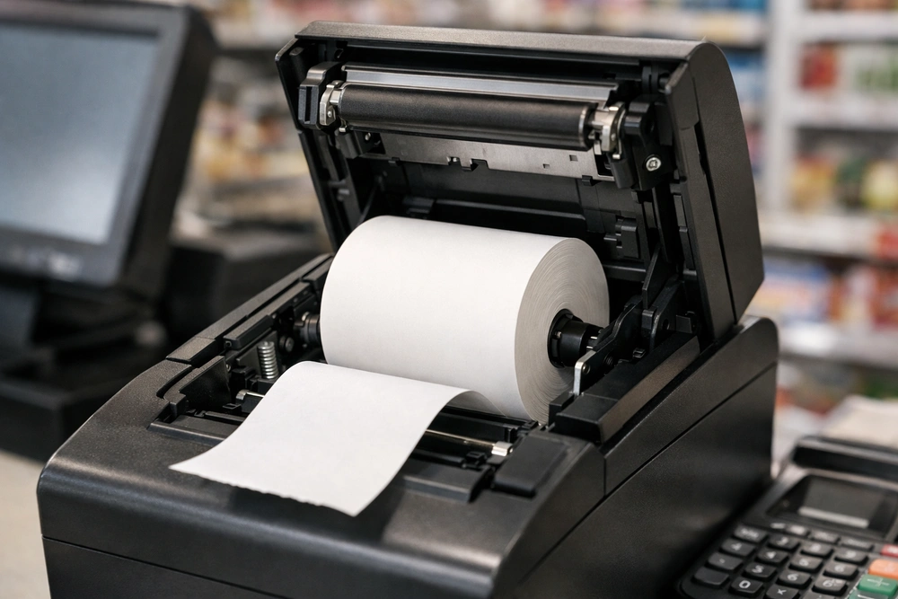 Ukuran dan core roll kertas thermal sering memicu masalah di mesin kasir karena diameter roll dan ukuran core yang tidak kompatibel dengan printer dapat mengganggu proses penarikan kertas, memperlambat transaksi, dan bahkan mempercepat keausan komponen mesin.